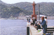 四季を問わず関の入り江、防波堤は太公望でいっぱい。
